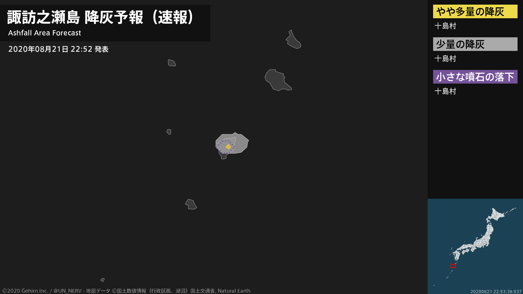 【諏訪之瀬島 噴火に関する火山観測報 2020年08月21日 22:52】
