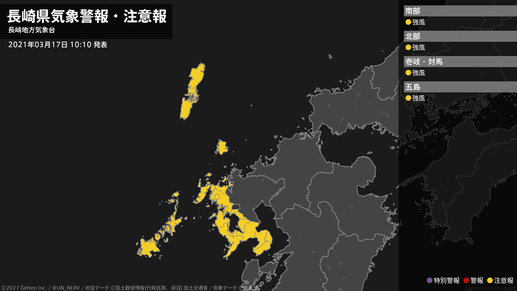 【長崎県 気象警報・注意報 2021年03月17日 10:10】