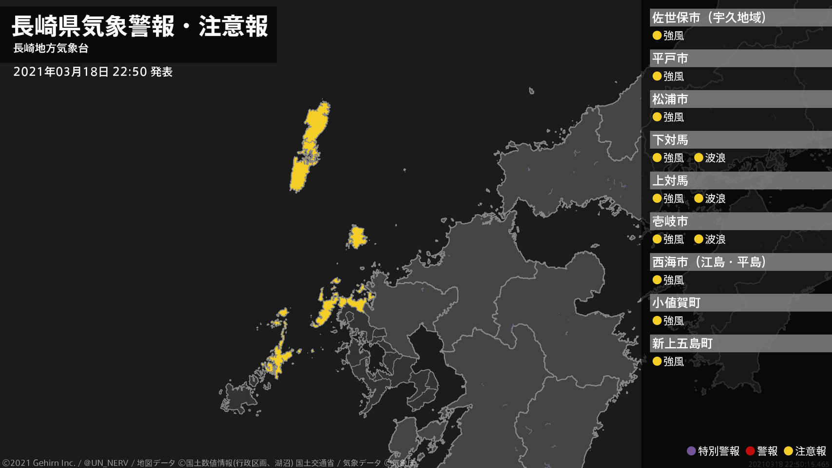 【長崎県 気象警報・注意報 2021年03月18日 22:50】
