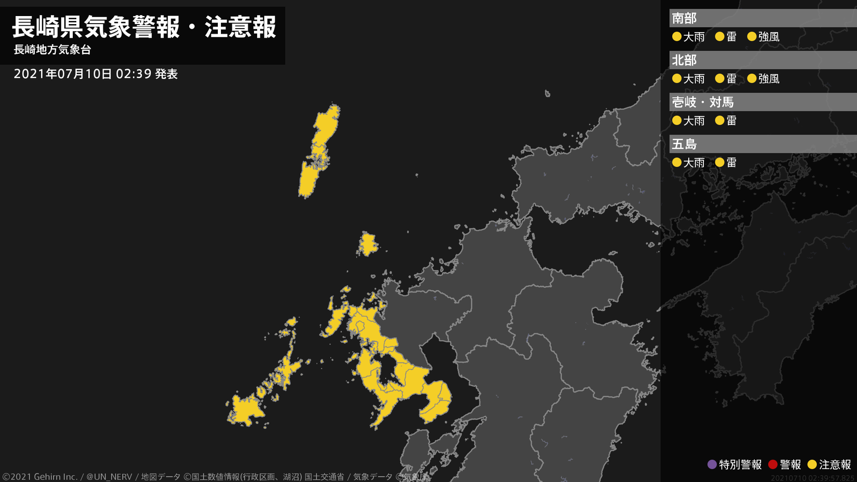 【長崎県 気象警報・注意報 2021年07月10日 02:39】