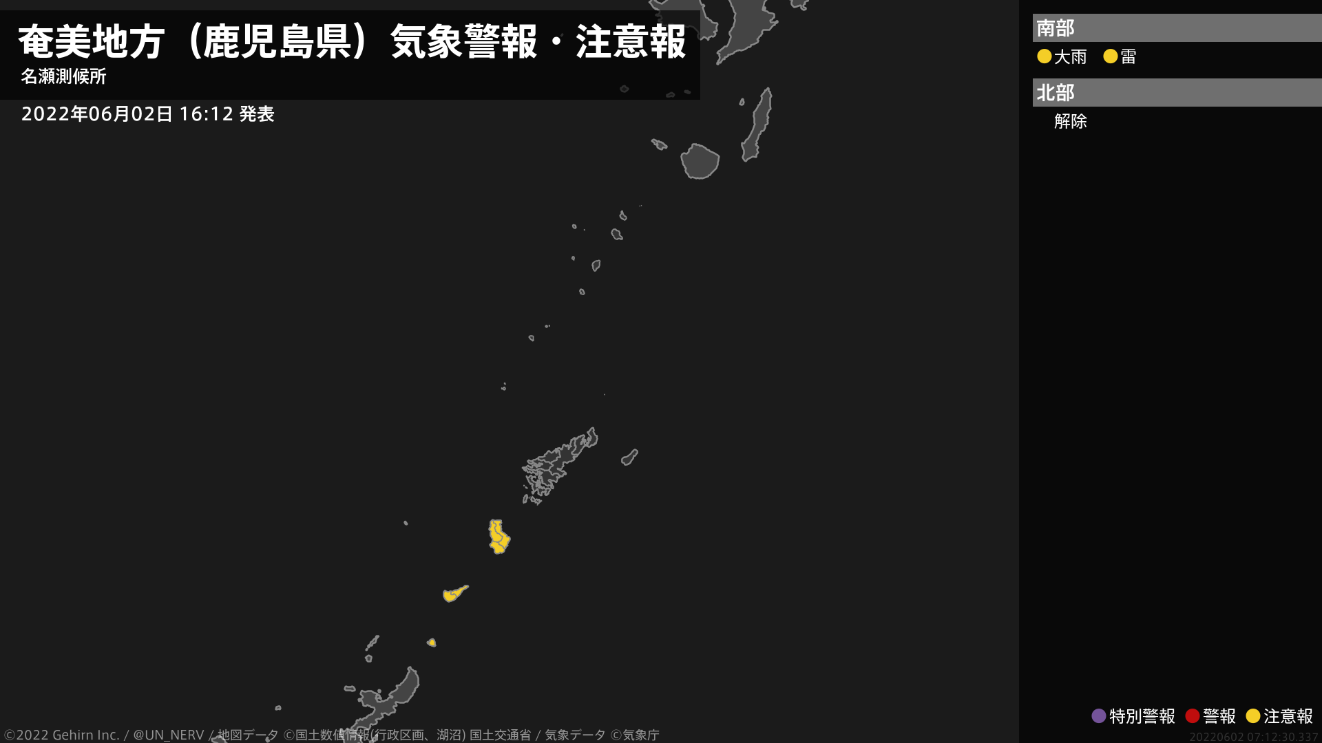 【奄美地方(鹿児島県) 気象警報・注意報 2022年06月02日 16:12】