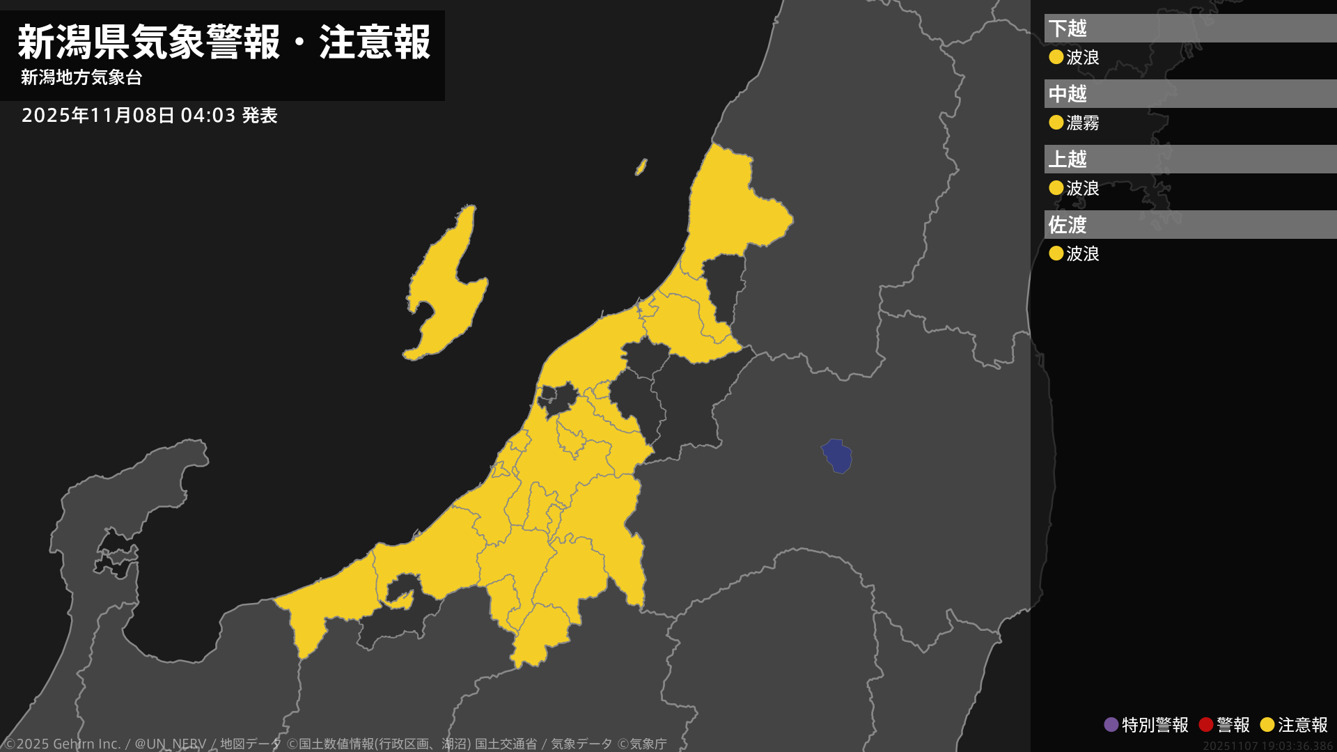 【新潟県 気象警報・注意報 2025年11月08日 04:03】