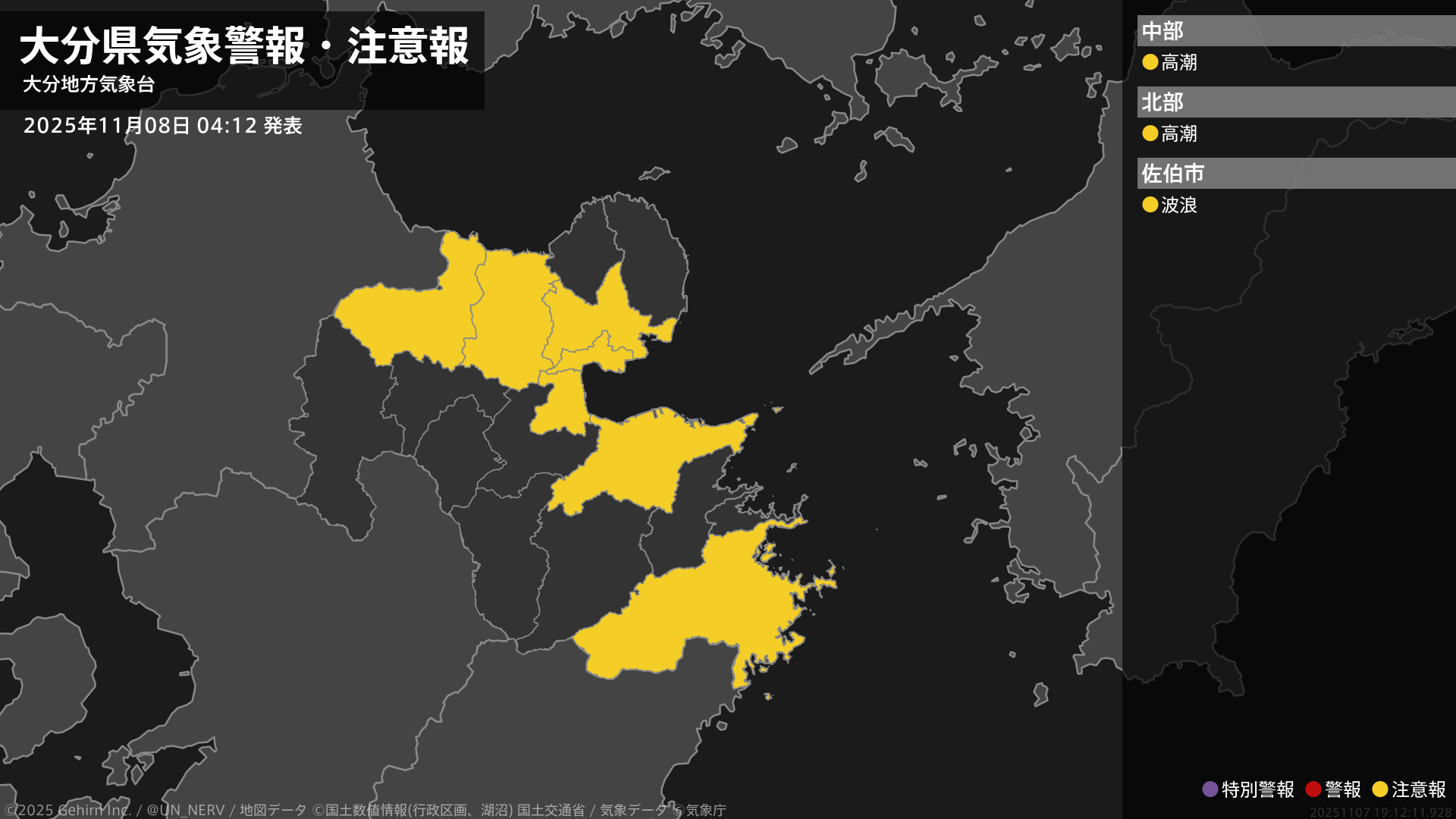 【大分県 気象警報・注意報 2025年11月08日 04:12】