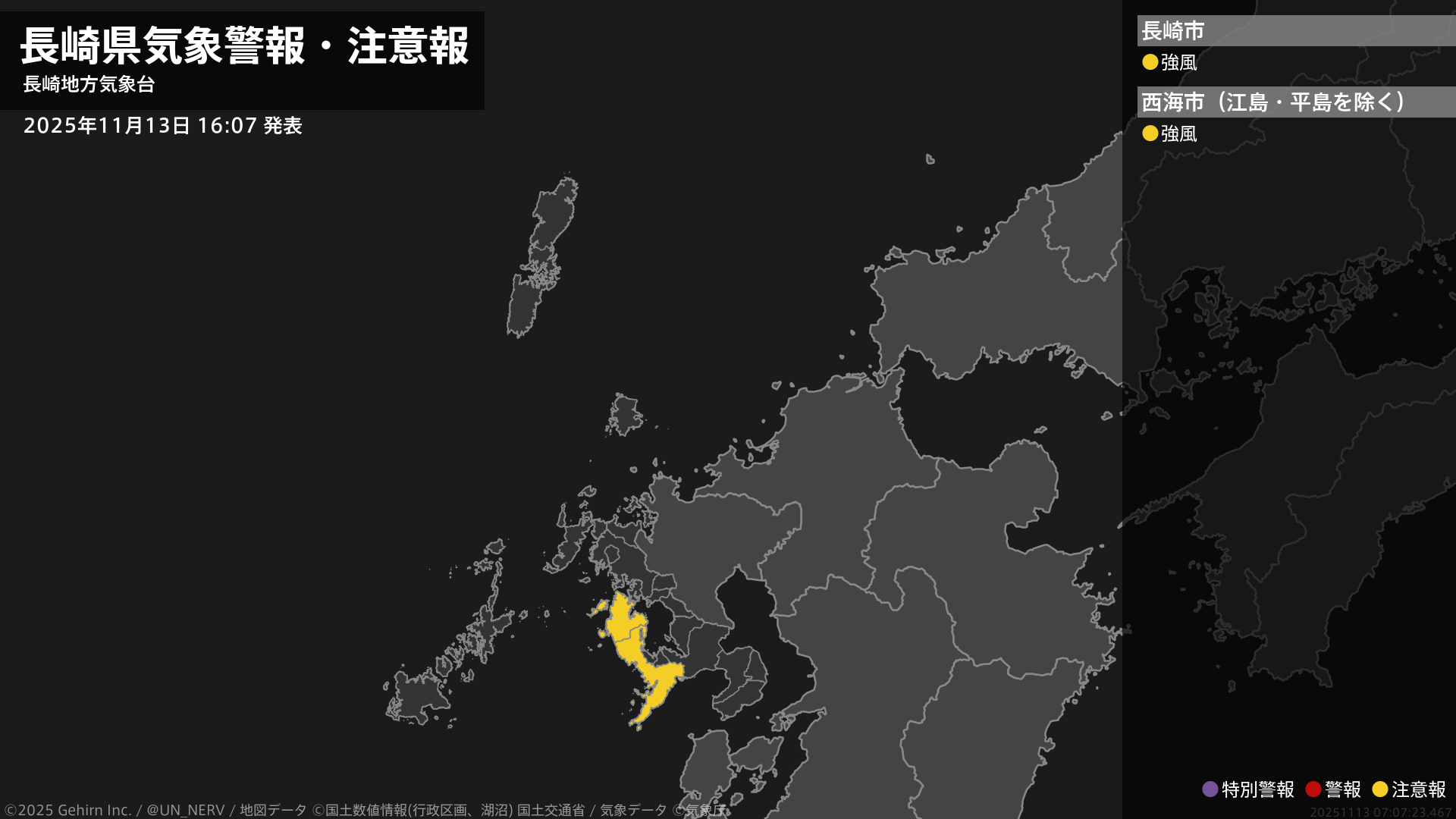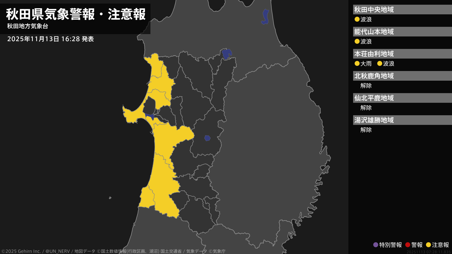 【大雨と高波及び突風に関する全般気象情報 2025年11月13日 16:44】