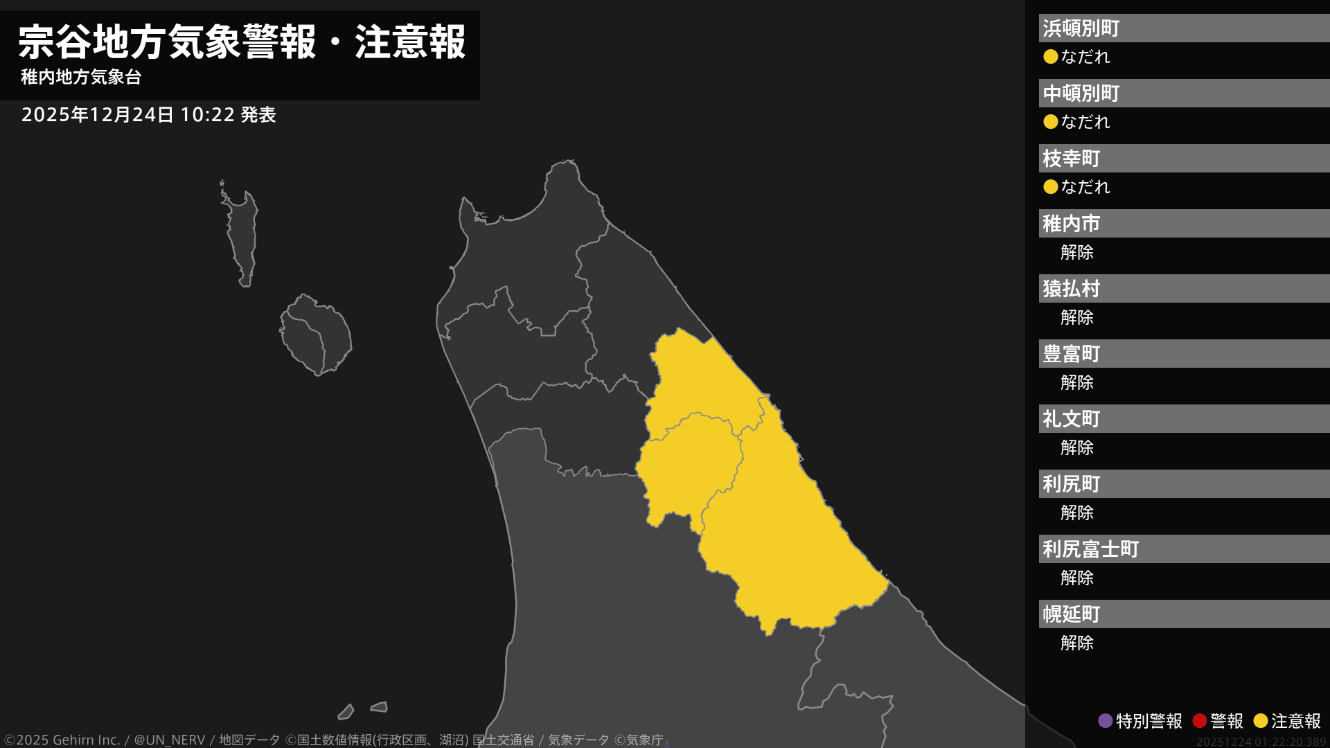 【宗谷地方 気象警報・注意報 2025年12月24日 10:22】宗谷地方では、24日までなだれに注意してください。#気象警報注意報 #宗谷地方
