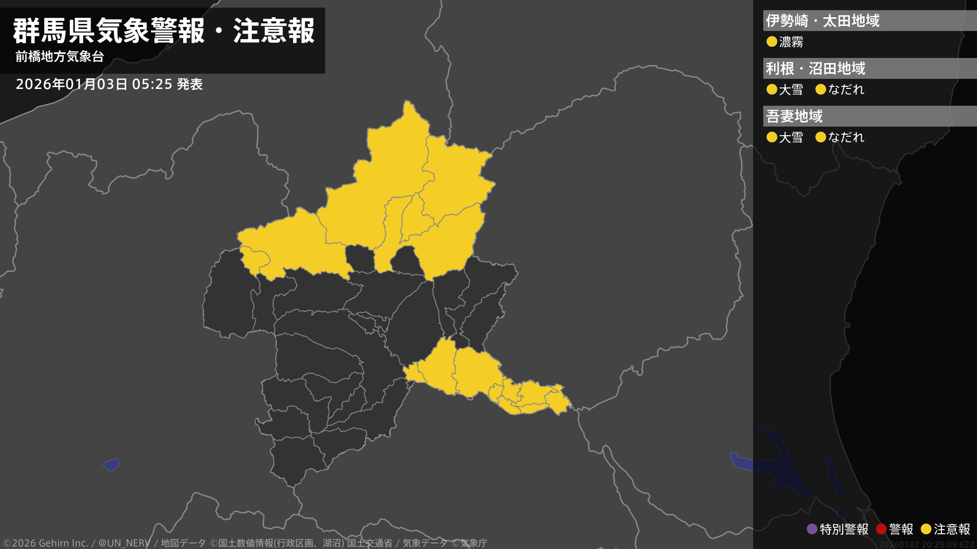 【群馬県 気象警報・注意報 2026年01月03日 05:25】