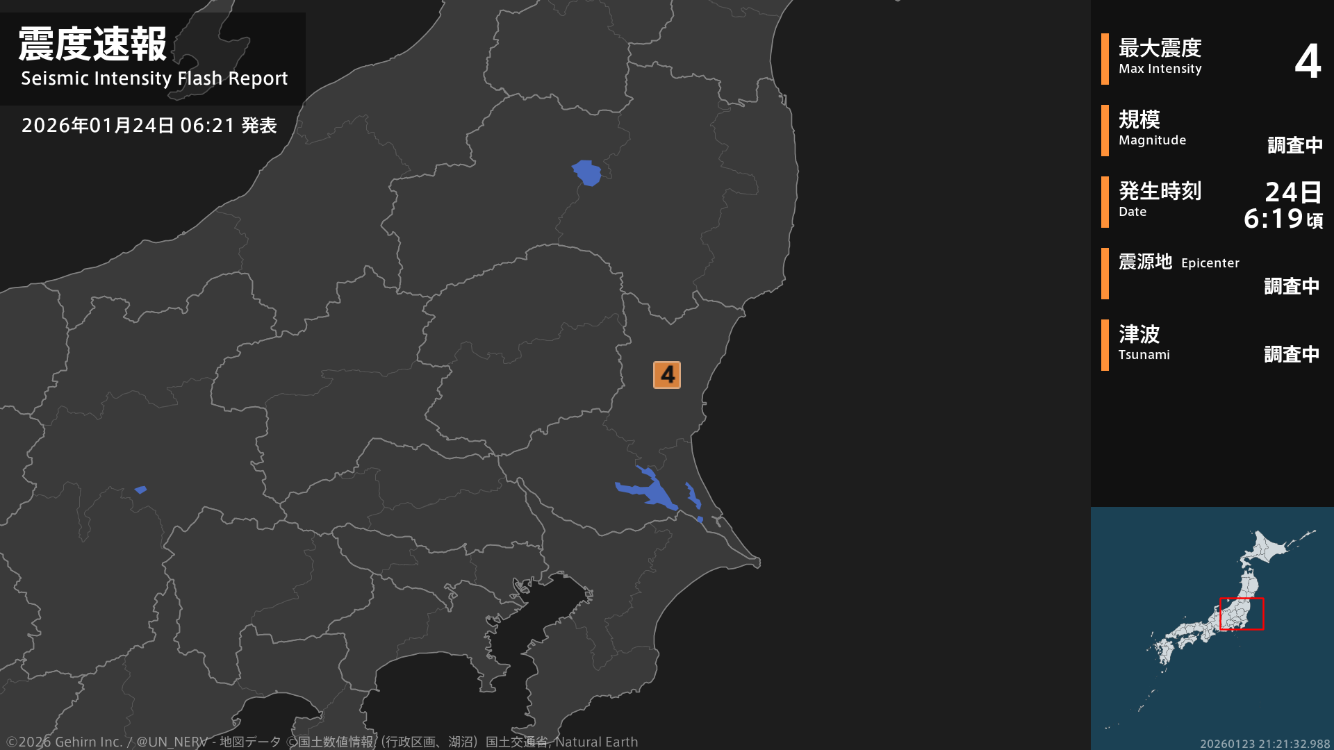 【緊急地震速報 第6報 2026年1月24日】