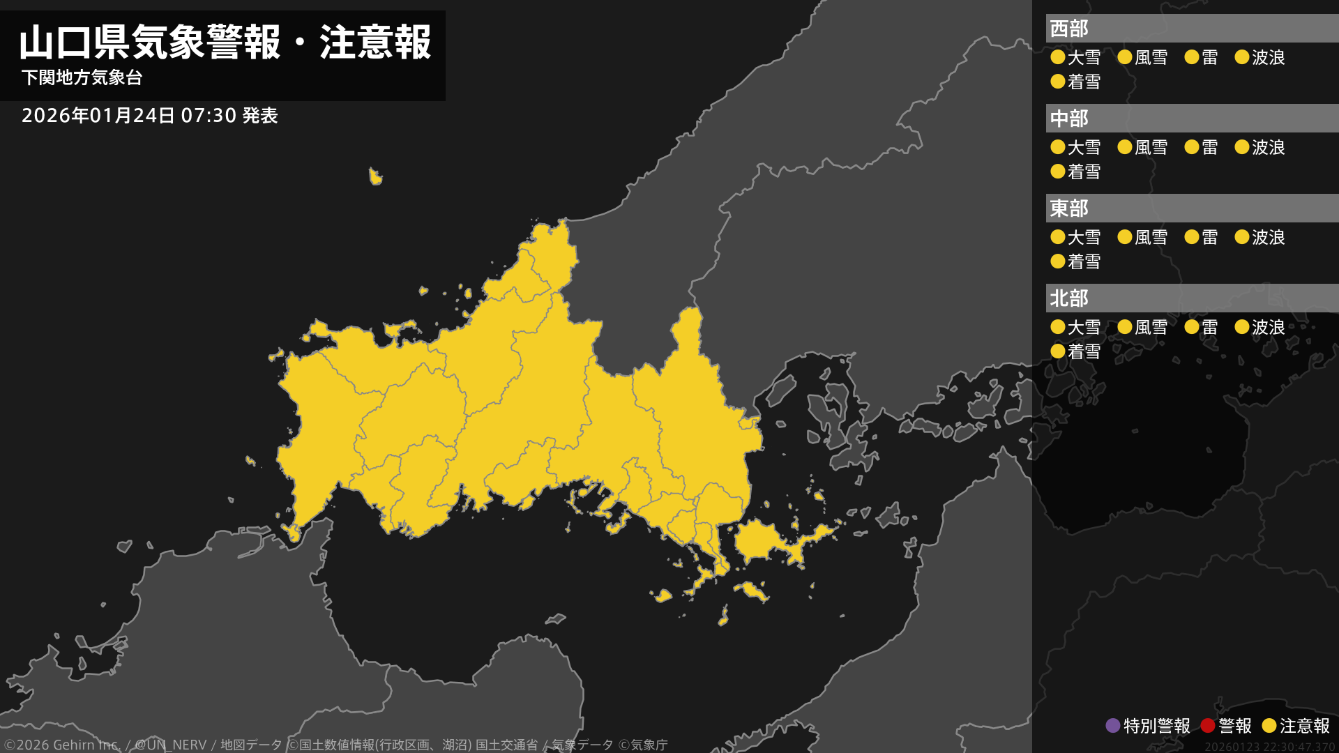 【山口県 気象警報・注意報 2026年01月24日 07:30】