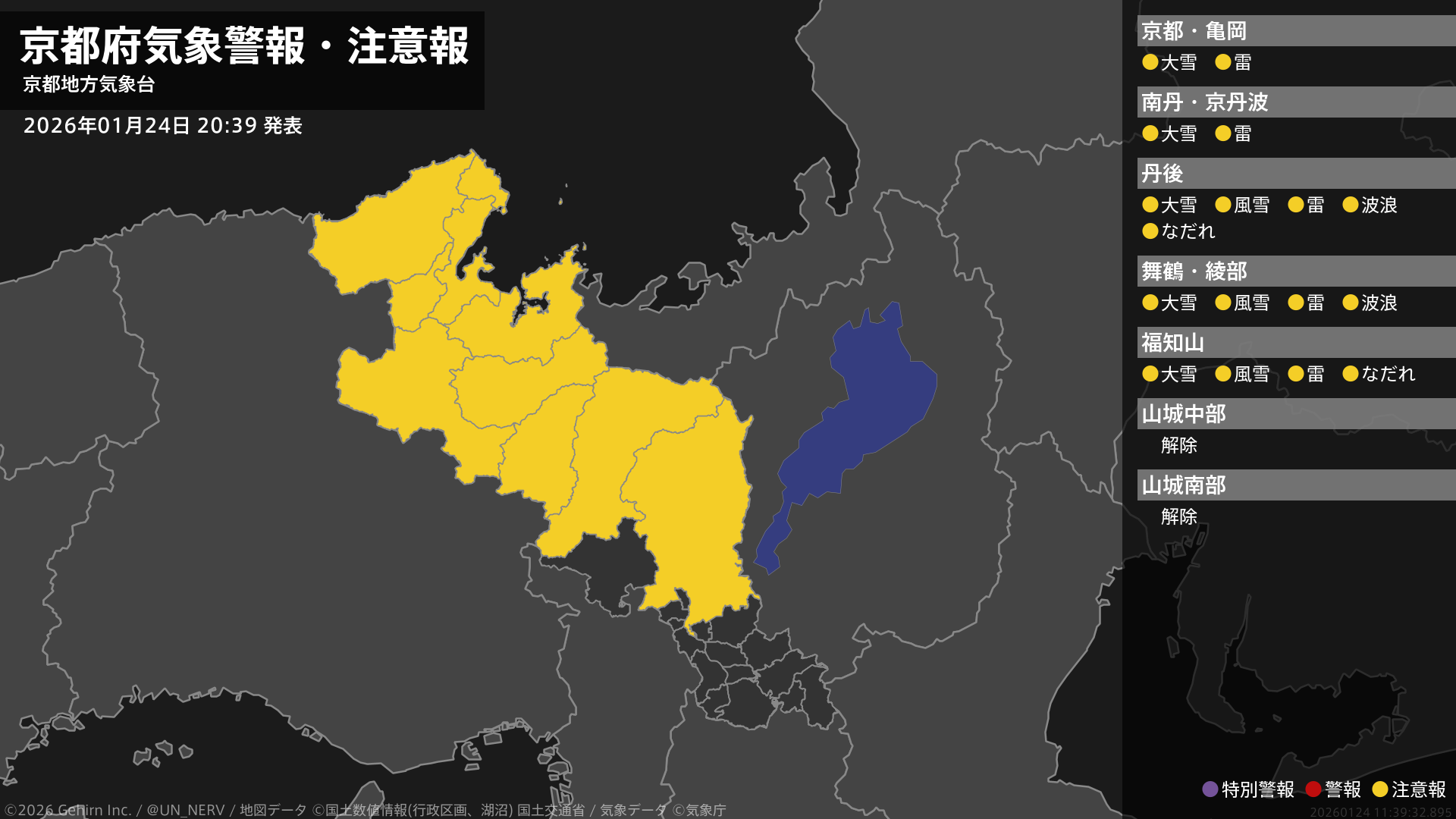 【京都府 気象警報・注意報 2026年01月24日 20:39】