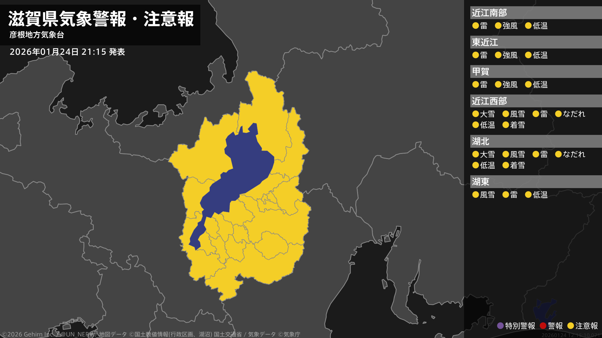 【滋賀県 気象警報・注意報 2026年01月24日 21:15】