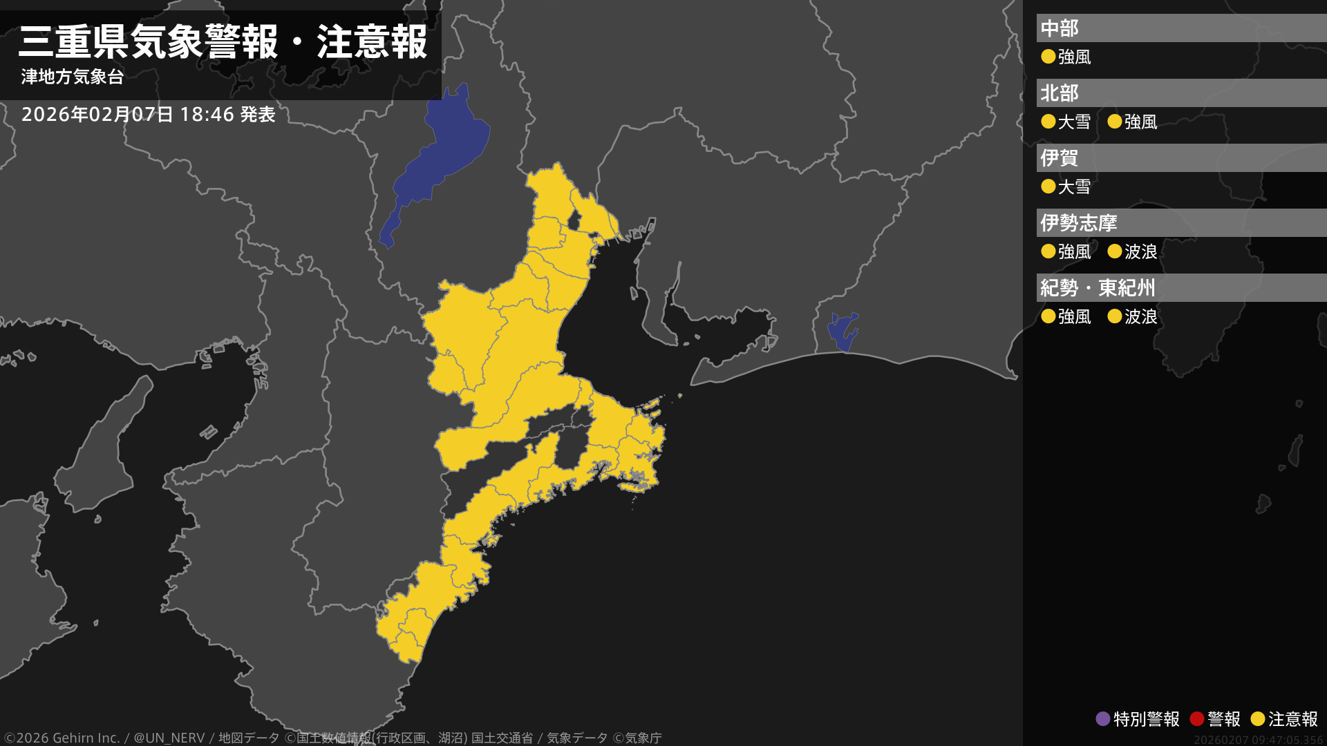 【大雪と雷及び突風に関する全般気象情報 2026年02月07日 17:00】