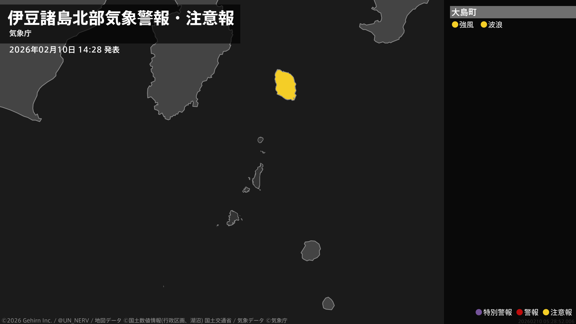 【東京都 気象警報・注意報 2026年02月10日 14:28】東京地方、伊豆諸島北部では、強風や高波に注意してください。東京地方では、空気の乾燥した状態が続くため、火の取り扱いに注意してください。#気象警報注意報 #東京都