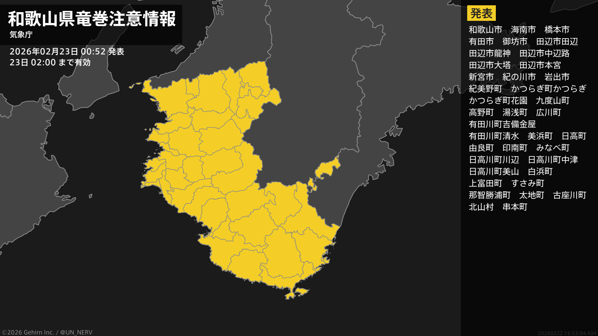 【緊急地震速報 第1報 2026年2月23日】