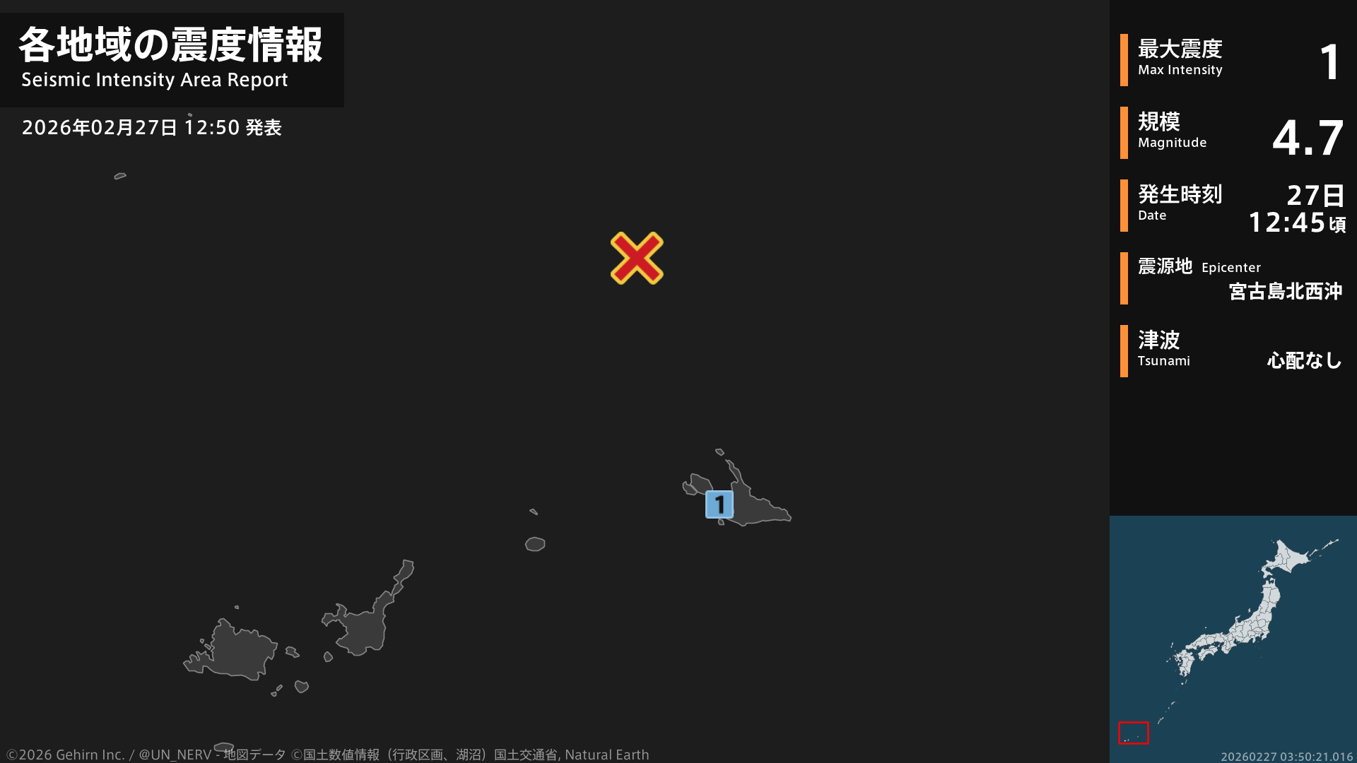 【緊急地震速報 第1報 2026年2月27日】