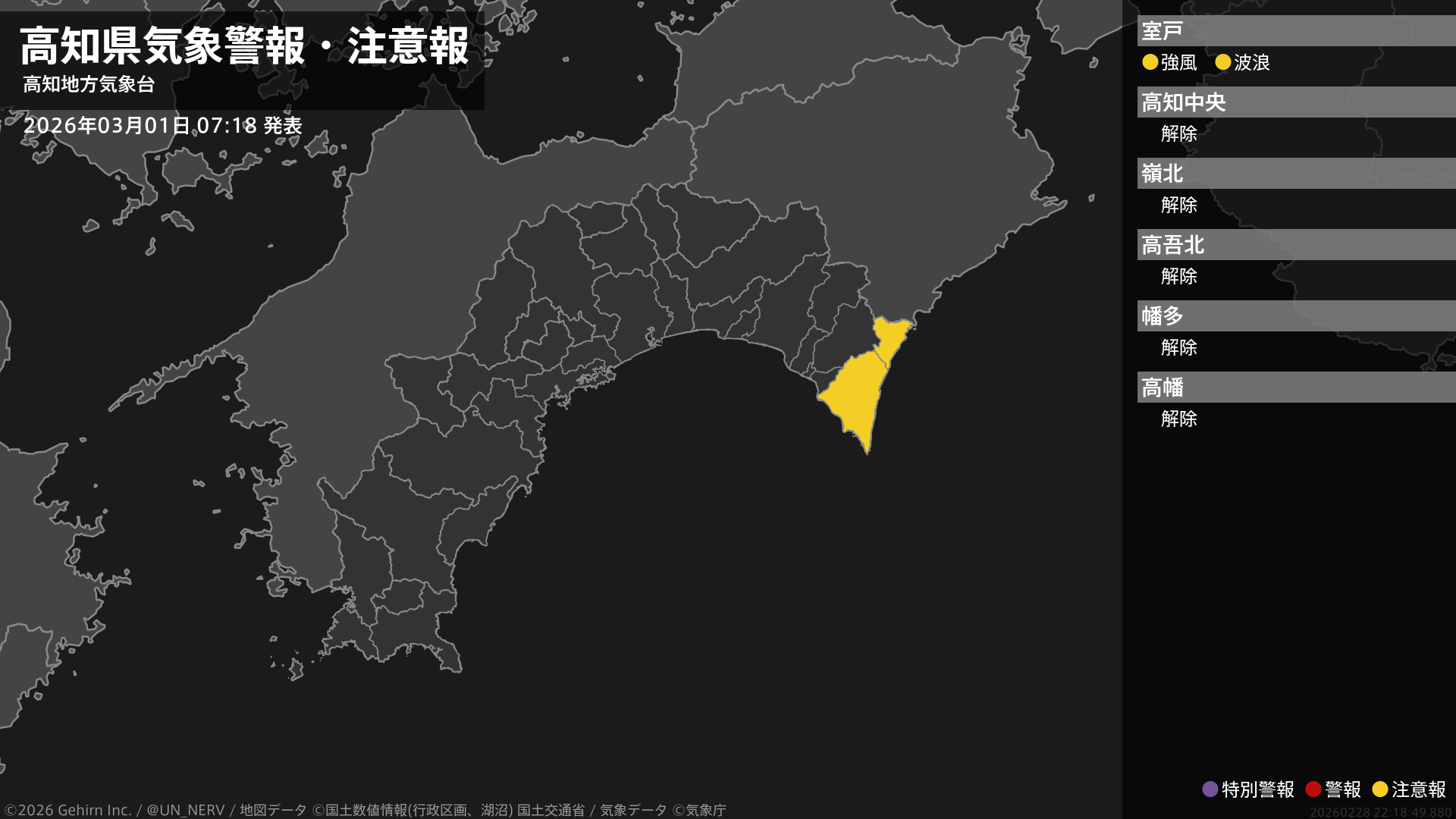 【緊急地震速報 第6報 2026年3月1日】