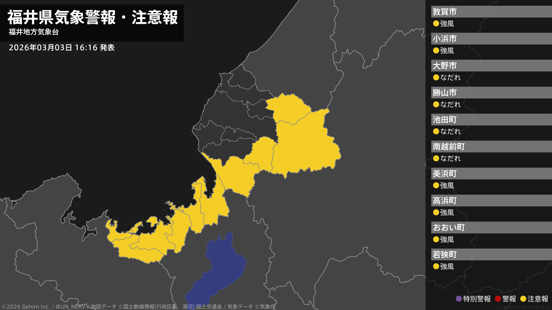 【福井県 気象警報・注意報 2026年03月03日 16:16】