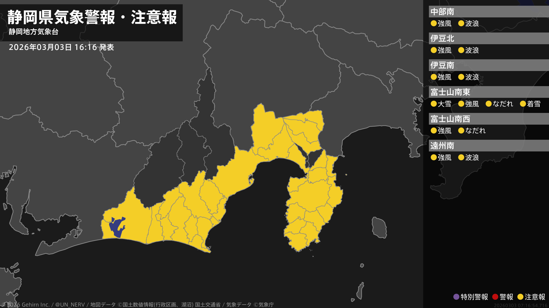 【静岡県 気象警報・注意報 2026年03月03日 16:16】