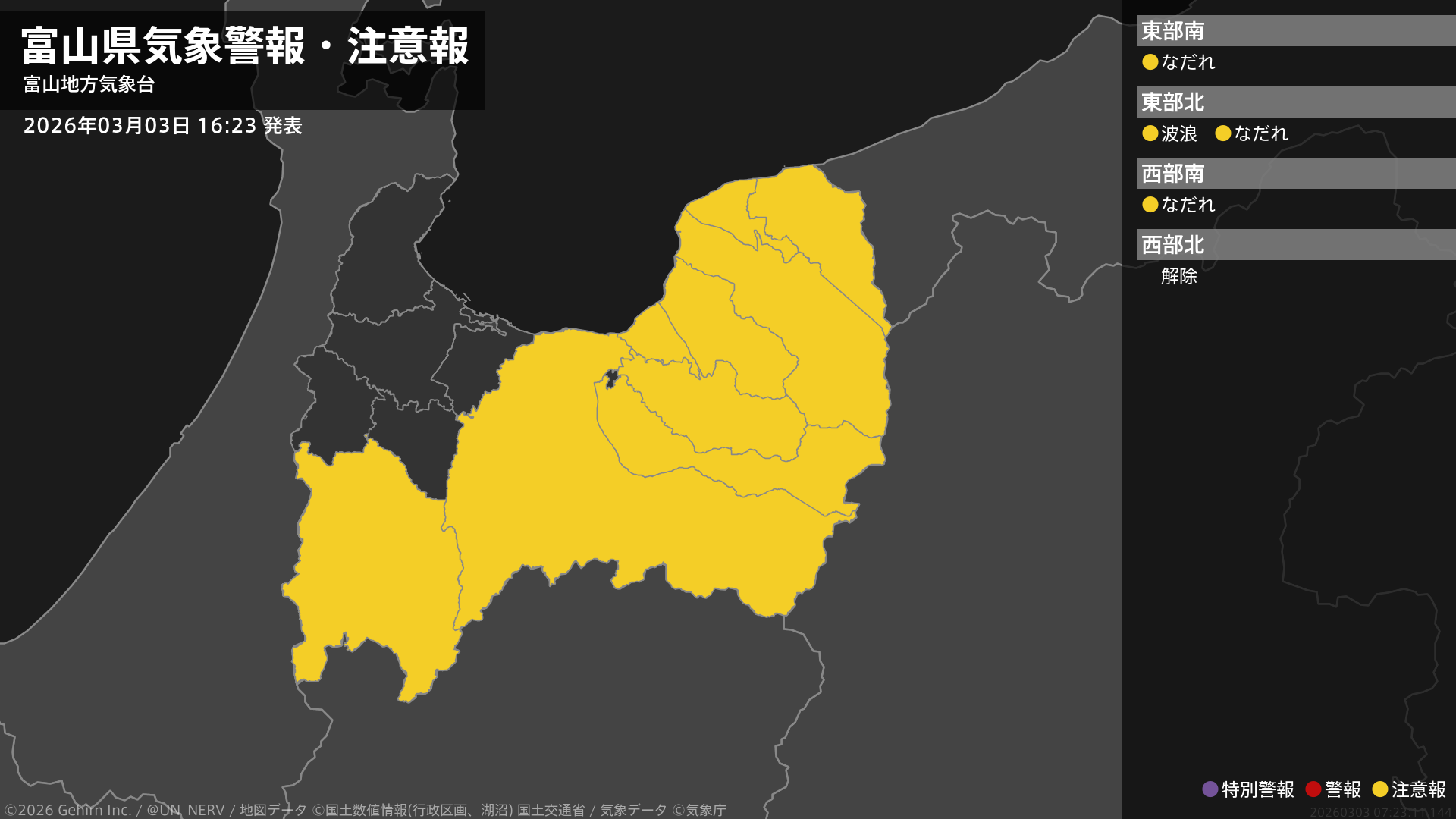 【富山県 気象警報・注意報 2026年03月03日 16:23】