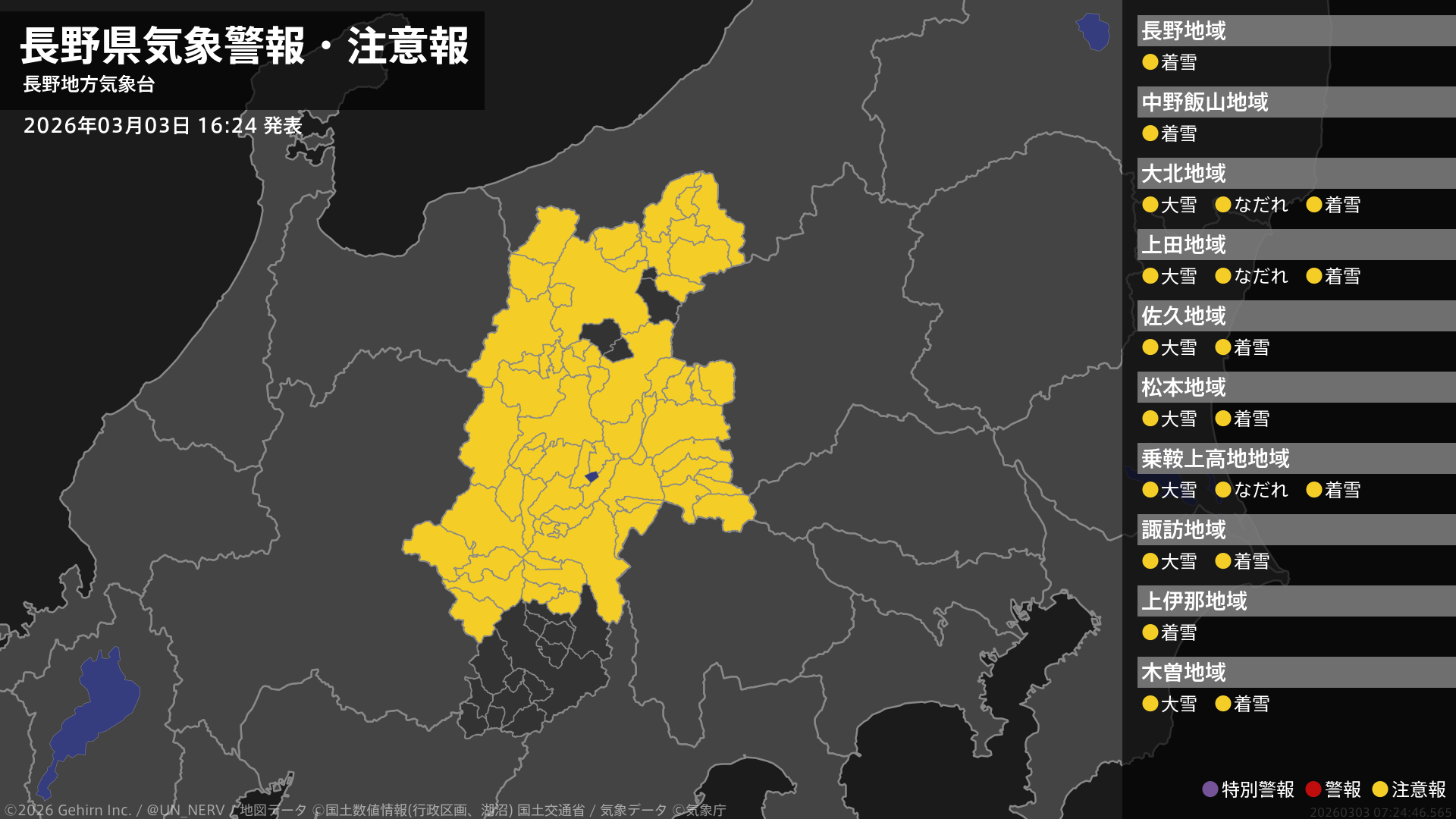 【長野県 気象警報・注意報 2026年03月03日 16:24】
