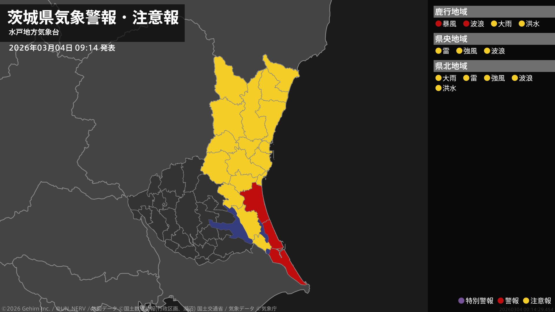 【茨城県 気象警報・注意報 2026年03月04日 09:14】