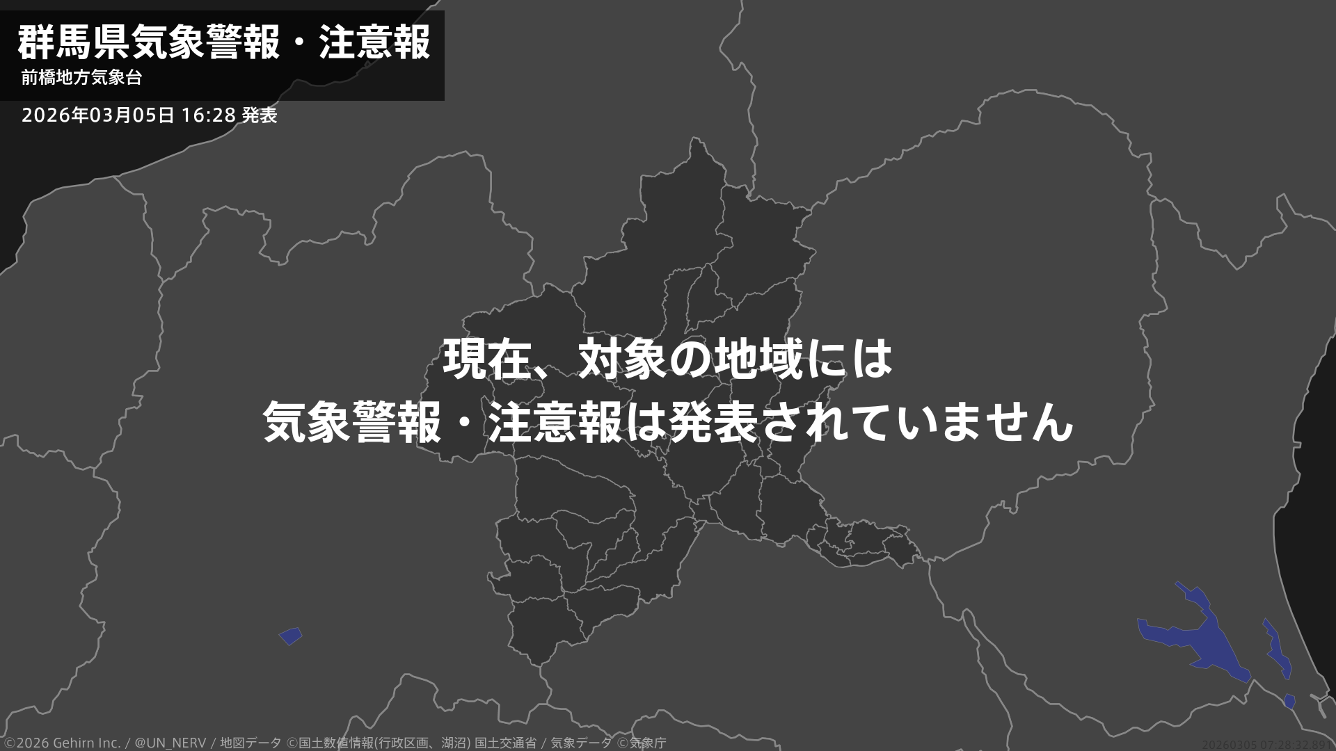 【群馬県 気象警報・注意報 2026年03月05日 16:28】注意報を解除します。#気象警報注意報 #群馬県