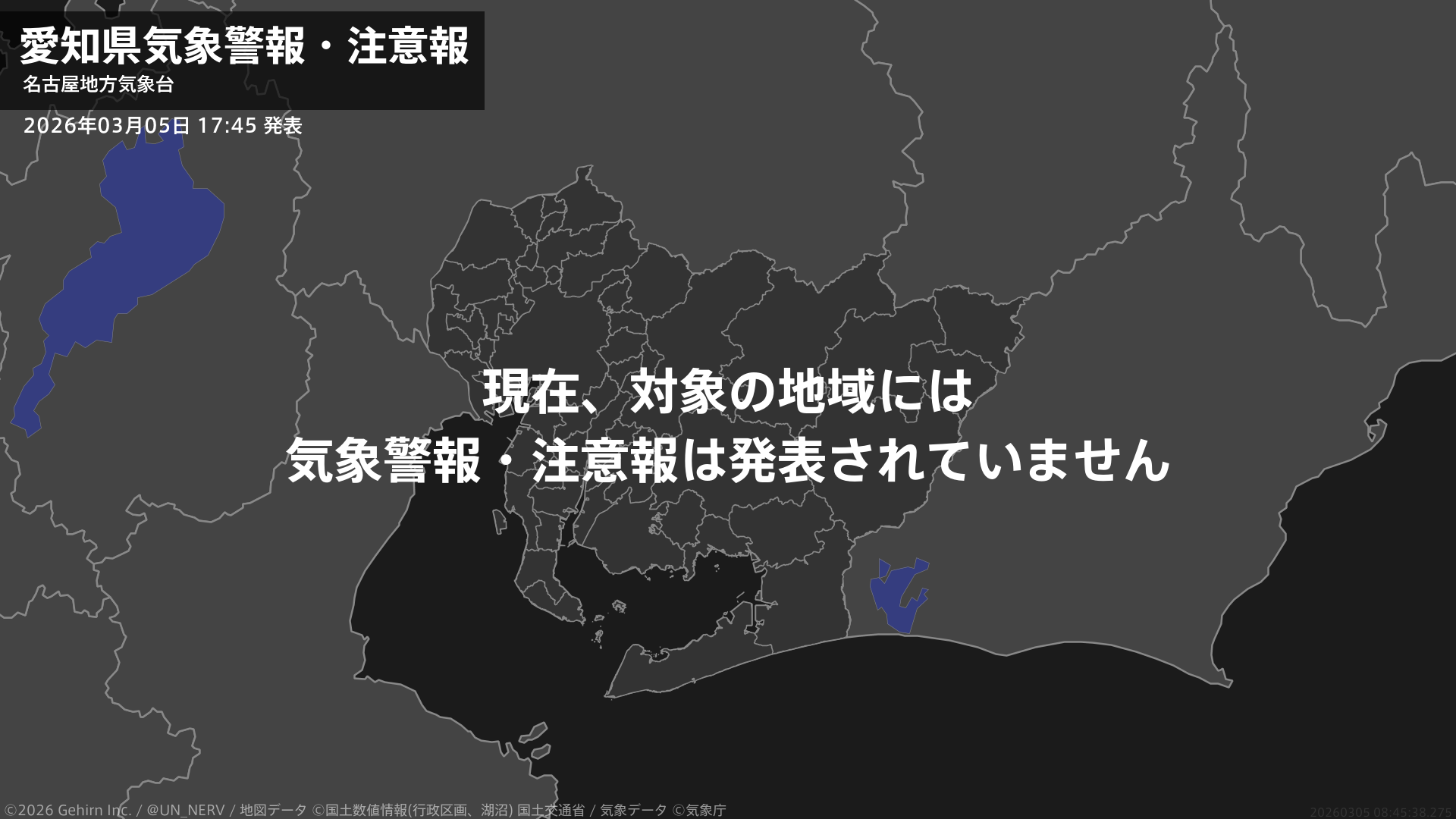 【愛知県 気象警報・注意報 2026年03月05日 17:45】注意報を解除します。#気象警報注意報 #愛知県