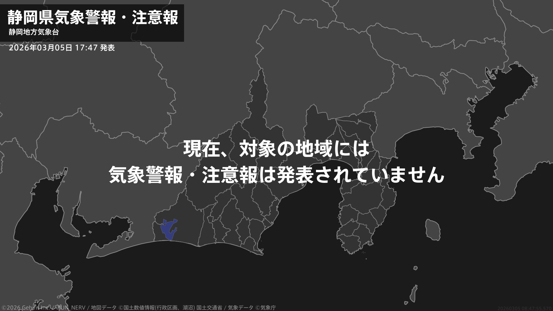 【静岡県 気象警報・注意報 2026年03月05日 17:47】注意報を解除します。#気象警報注意報 #静岡県