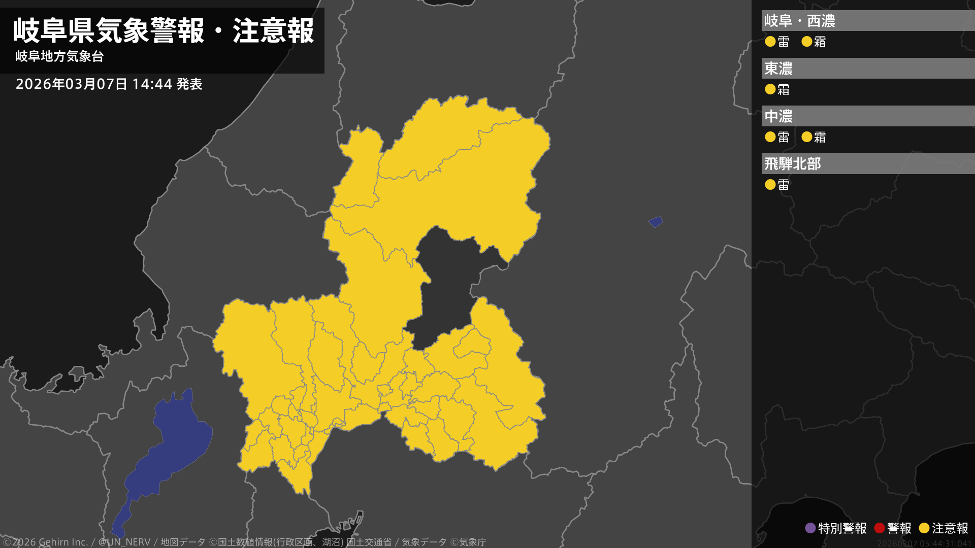 【岐阜県 気象警報・注意報 2026年03月07日 14:44】