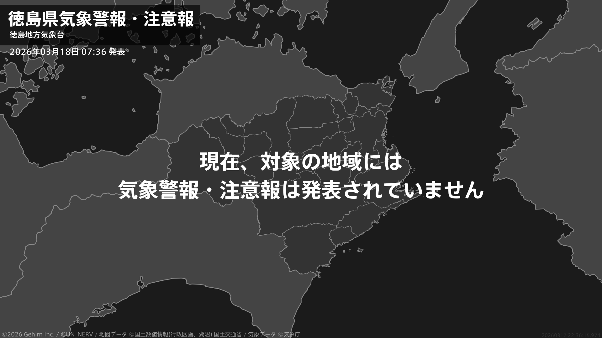 【徳島県 気象警報・注意報 2026年03月18日 07:36】注意報を解除します。#気象警報注意報 #徳島県