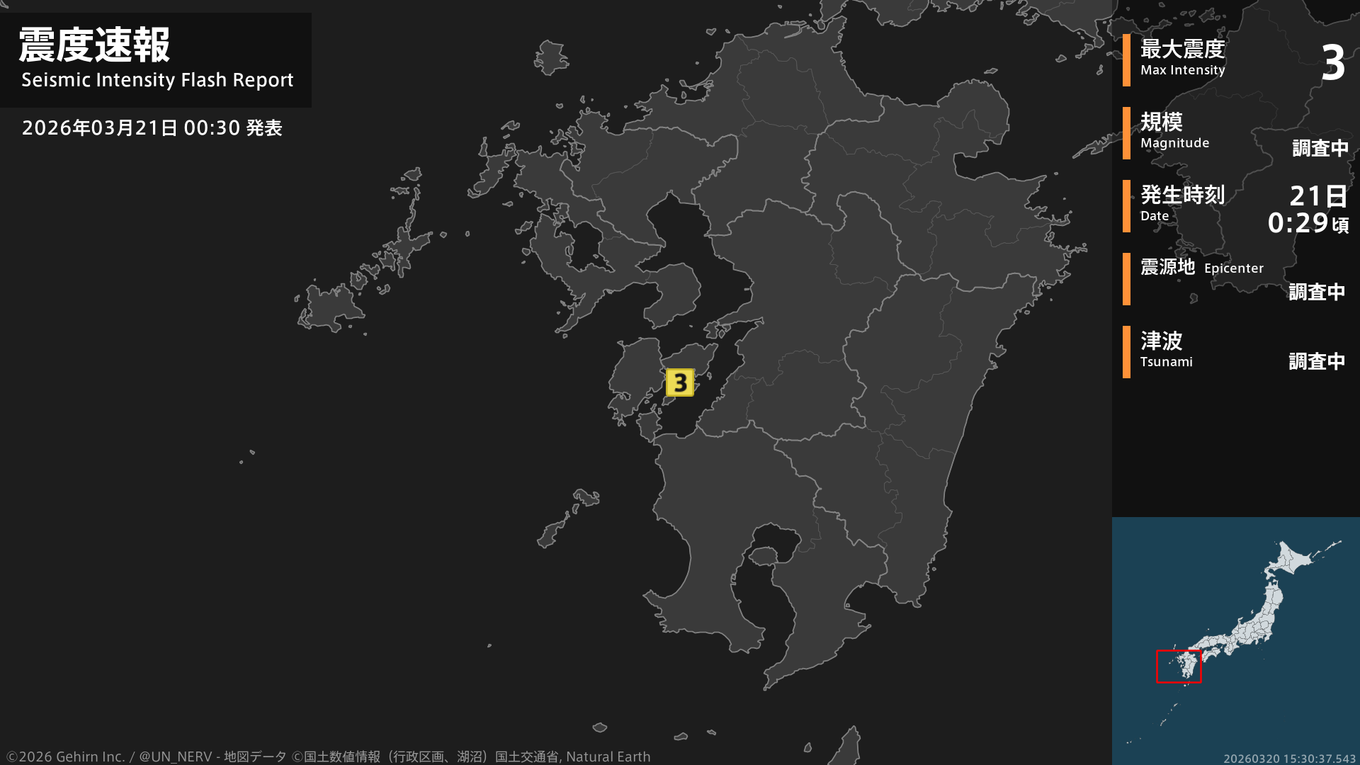 【緊急地震速報 第3報 2026年3月21日】