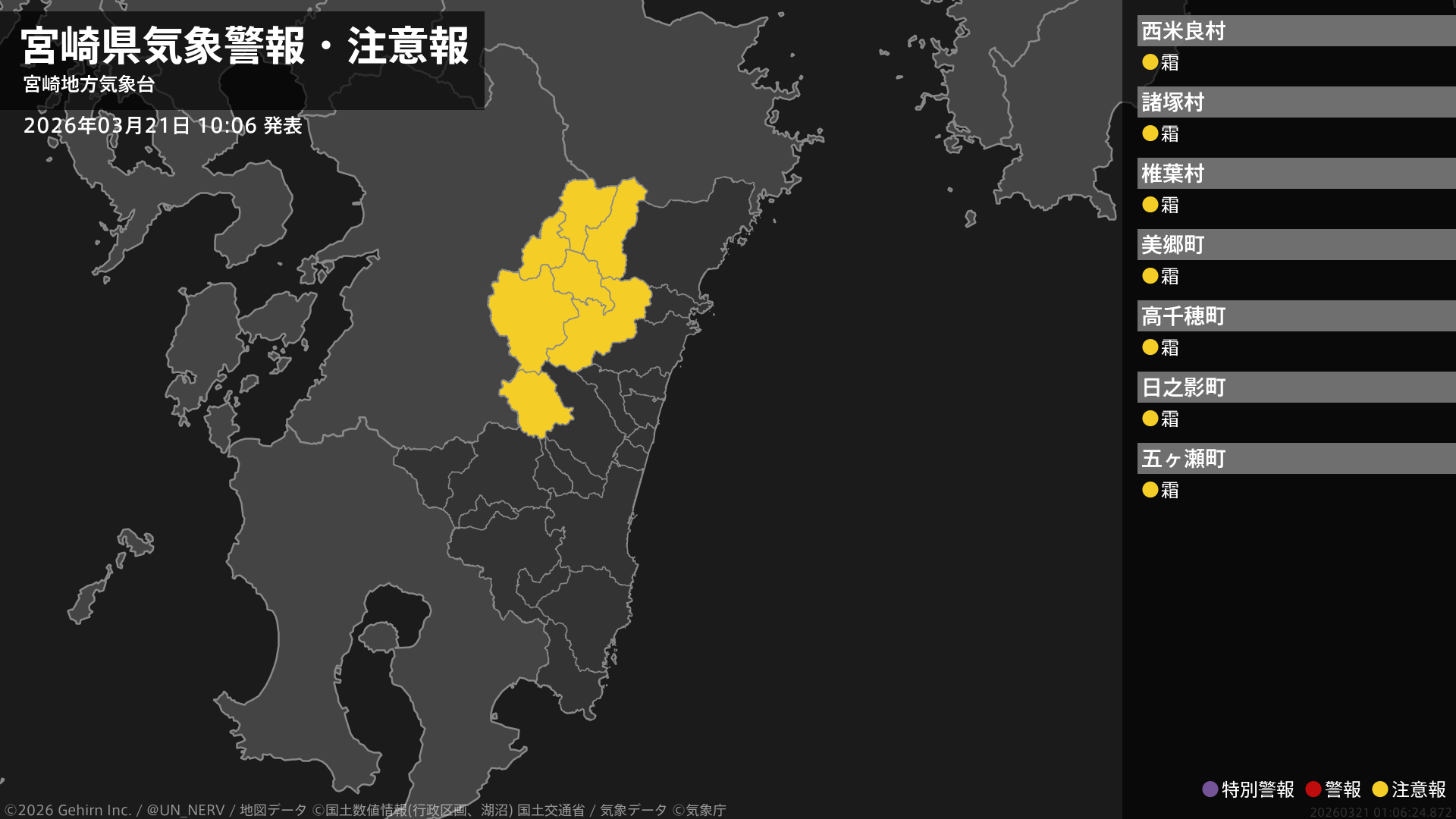 【宮崎県 気象警報・注意報 2026年03月21日 10:06】