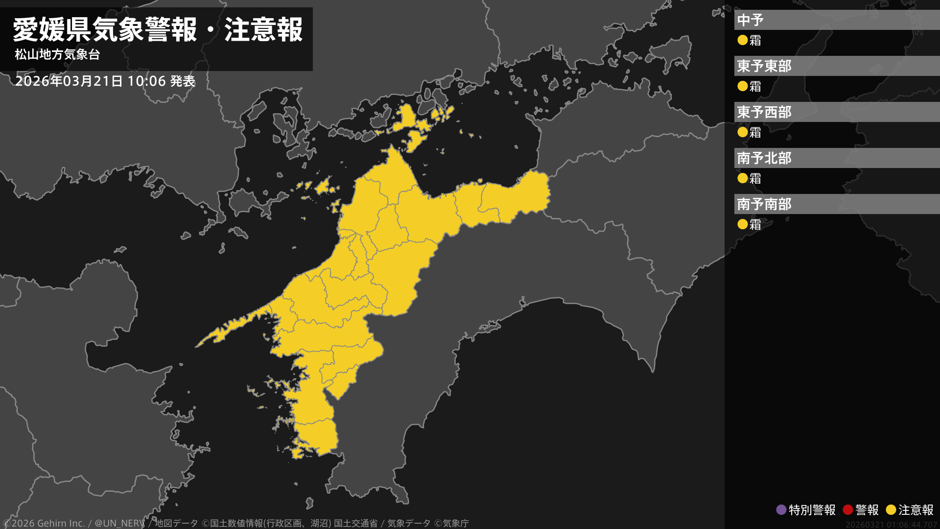 【愛媛県 気象警報・注意報 2026年03月21日 10:06】