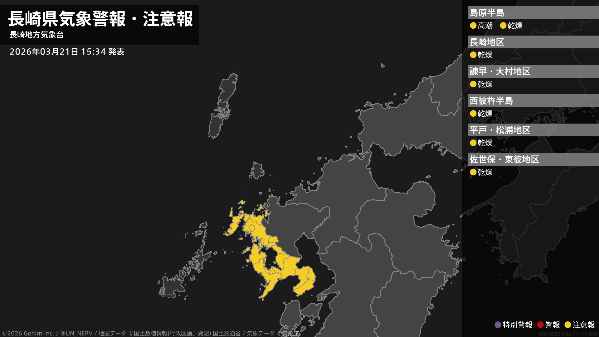 【長崎県 気象警報・注意報 2026年03月21日 15:34】