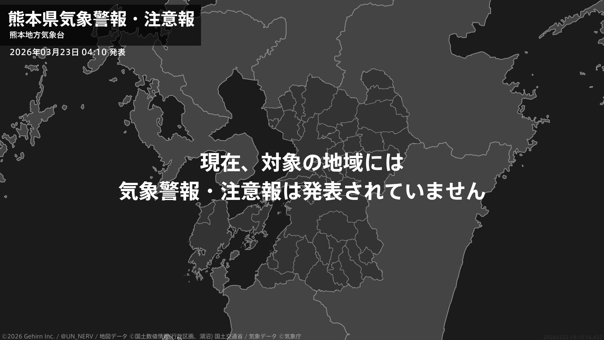 【熊本県 気象警報・注意報 2026年03月23日 04:10】注意報を解除します。#気象警報注意報 #熊本県