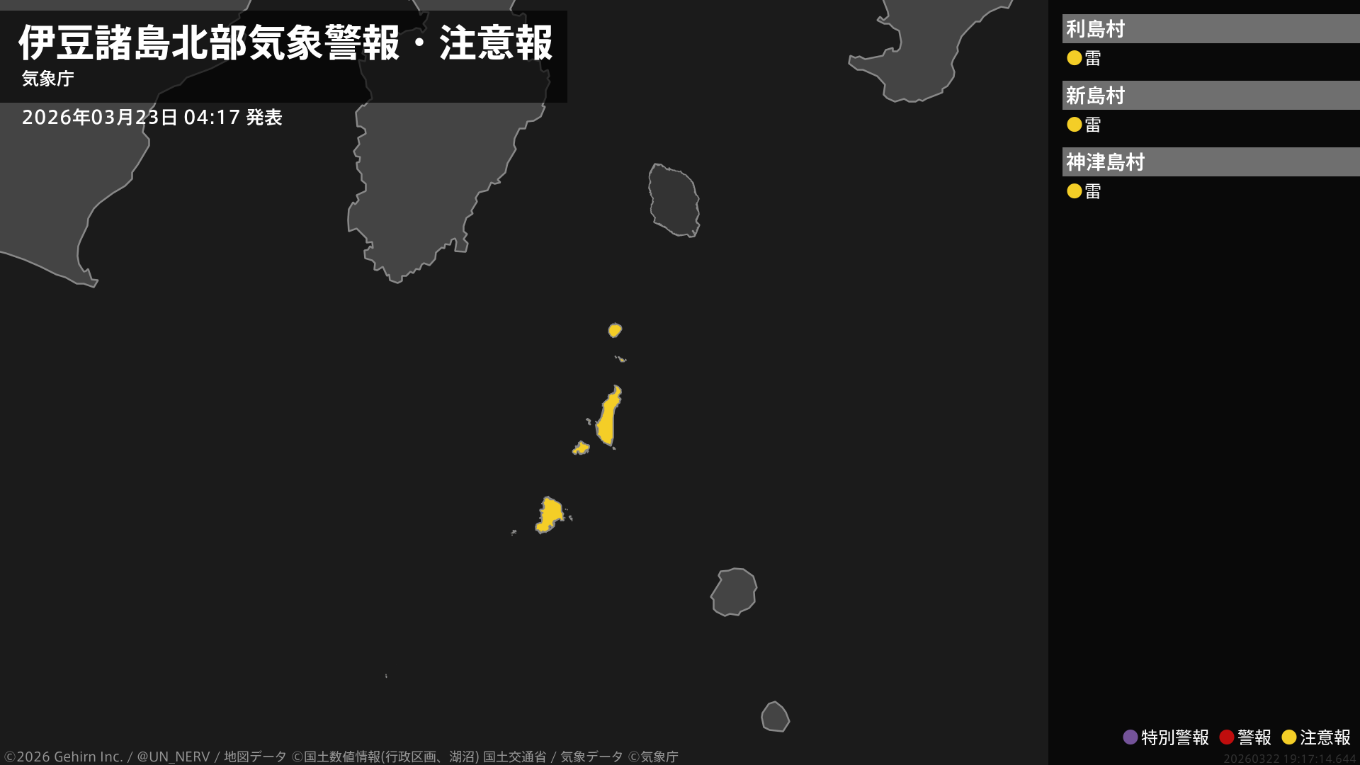 【東京都 気象警報・注意報 2026年03月23日 04:17】伊豆諸島南部では、高波に注意してください。東京地方、伊豆諸島北部、伊豆諸島南部では、急な強い雨や落雷に注意してください。#気象警報注意報 #東京都
