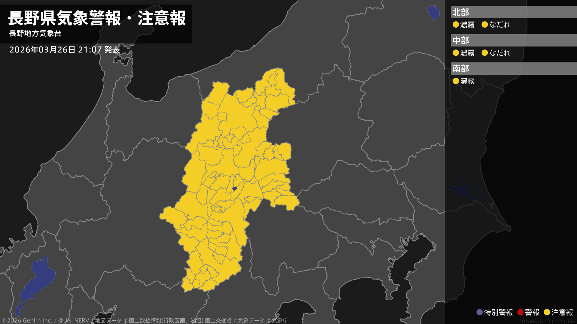 【長野県 気象警報・注意報 2026年03月26日 21:07】