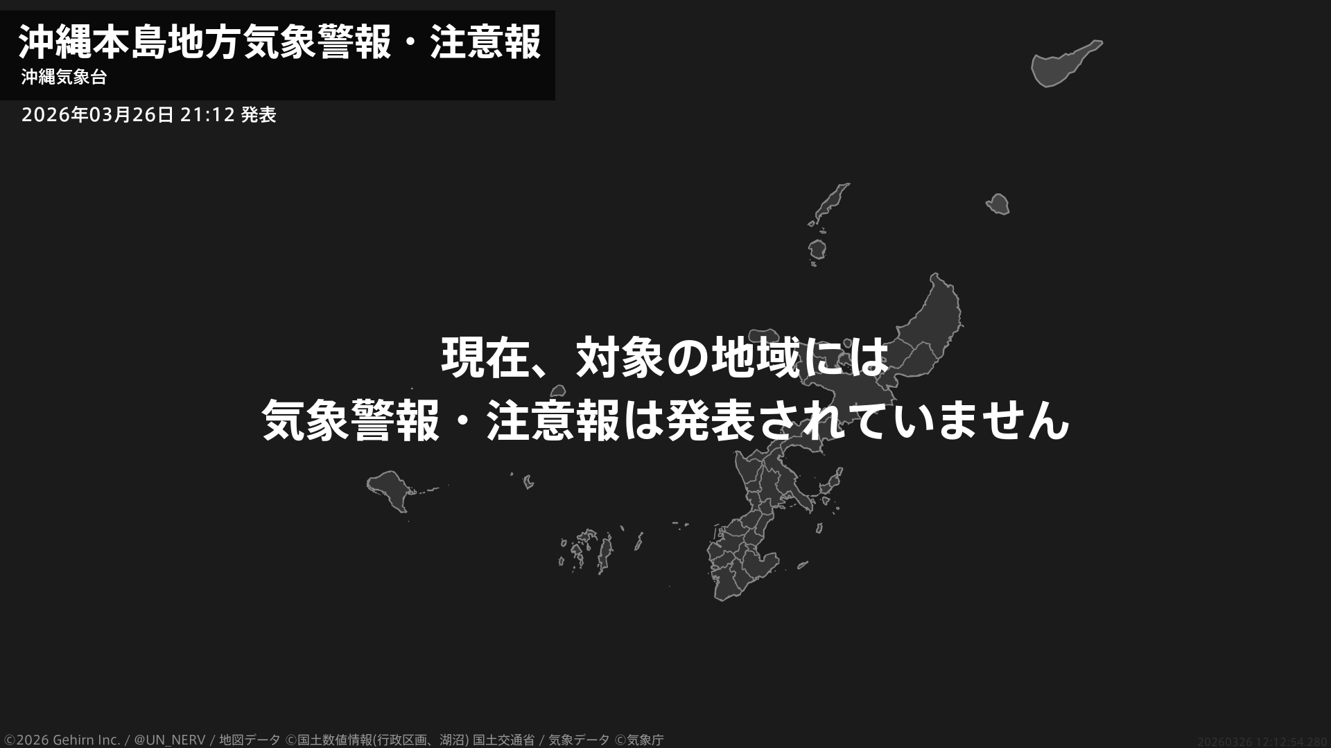 【沖縄本島地方 気象警報・注意報 2026年03月26日 21:12】