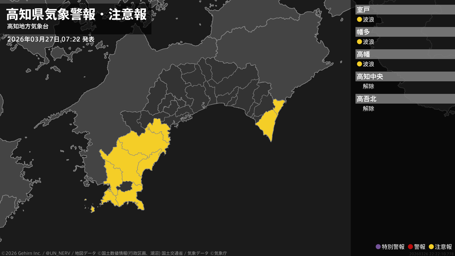 【高知県 気象警報・注意報 2026年03月27日 07:22】