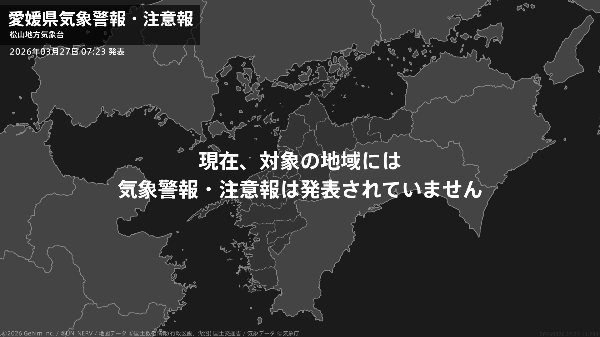 【愛媛県 気象警報・注意報 2026年03月27日 07:23】