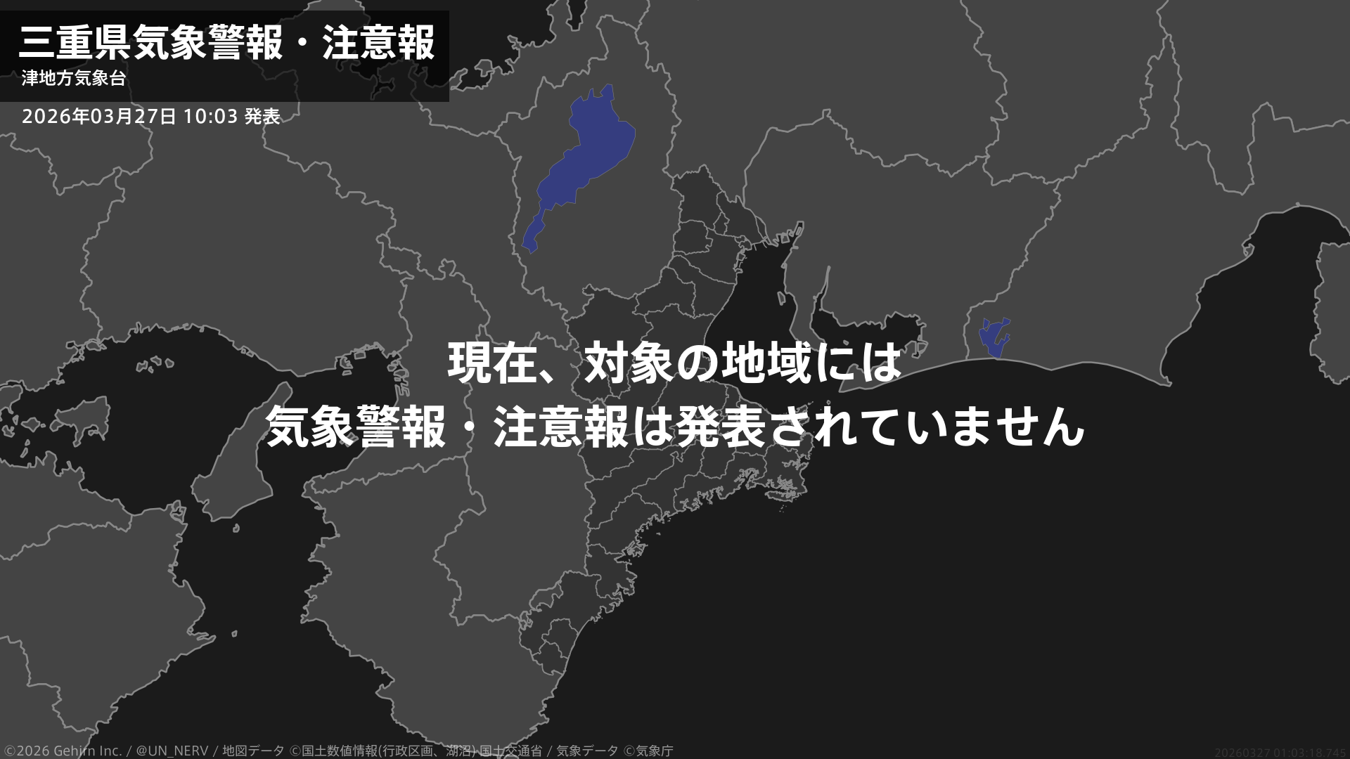 【三重県 気象警報・注意報 2026年03月27日 10:03】注意報を解除します。#気象警報注意報 #三重県