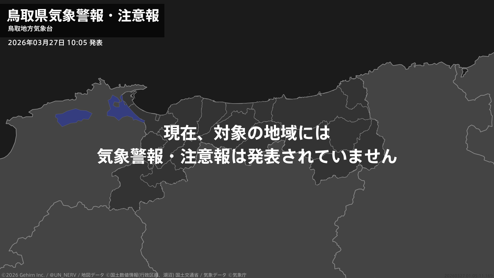 【鳥取県 気象警報・注意報 2026年03月27日 10:05】注意報を解除します。#気象警報注意報 #鳥取県