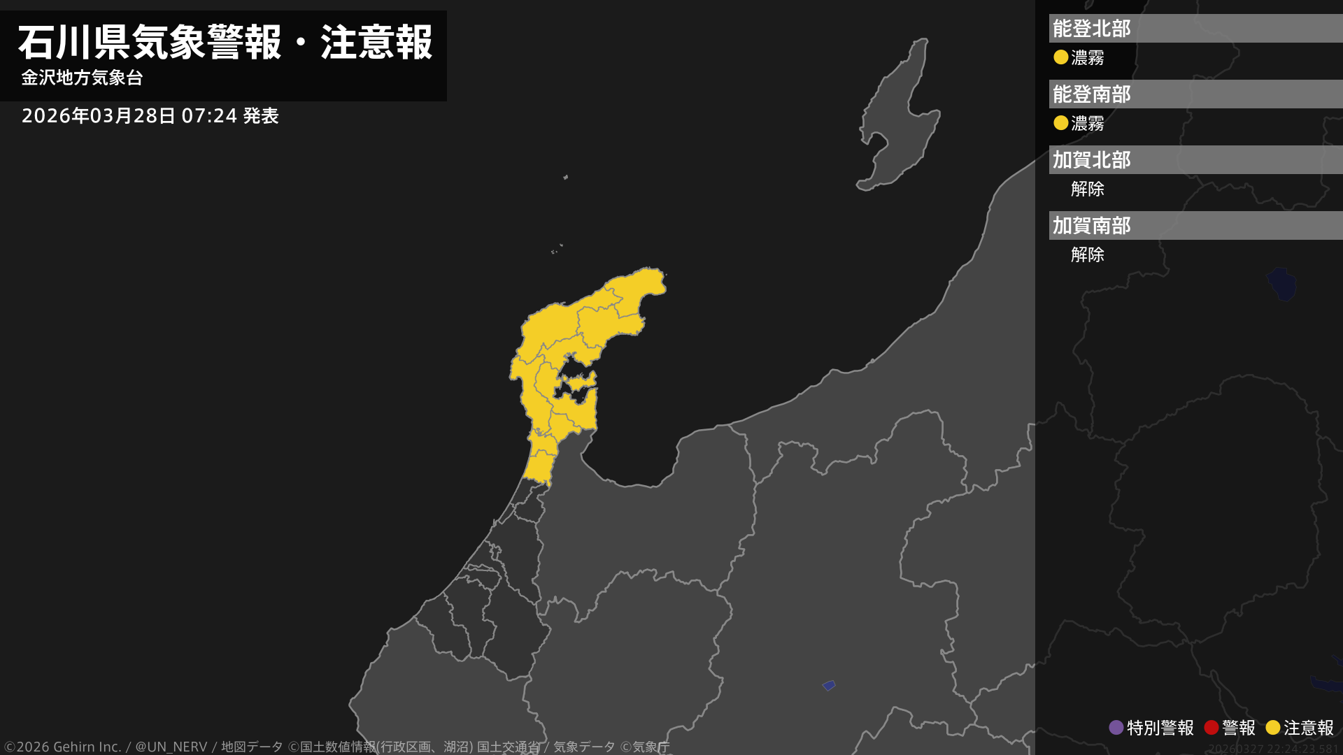 【石川県 気象警報・注意報 2026年03月28日 07:24】