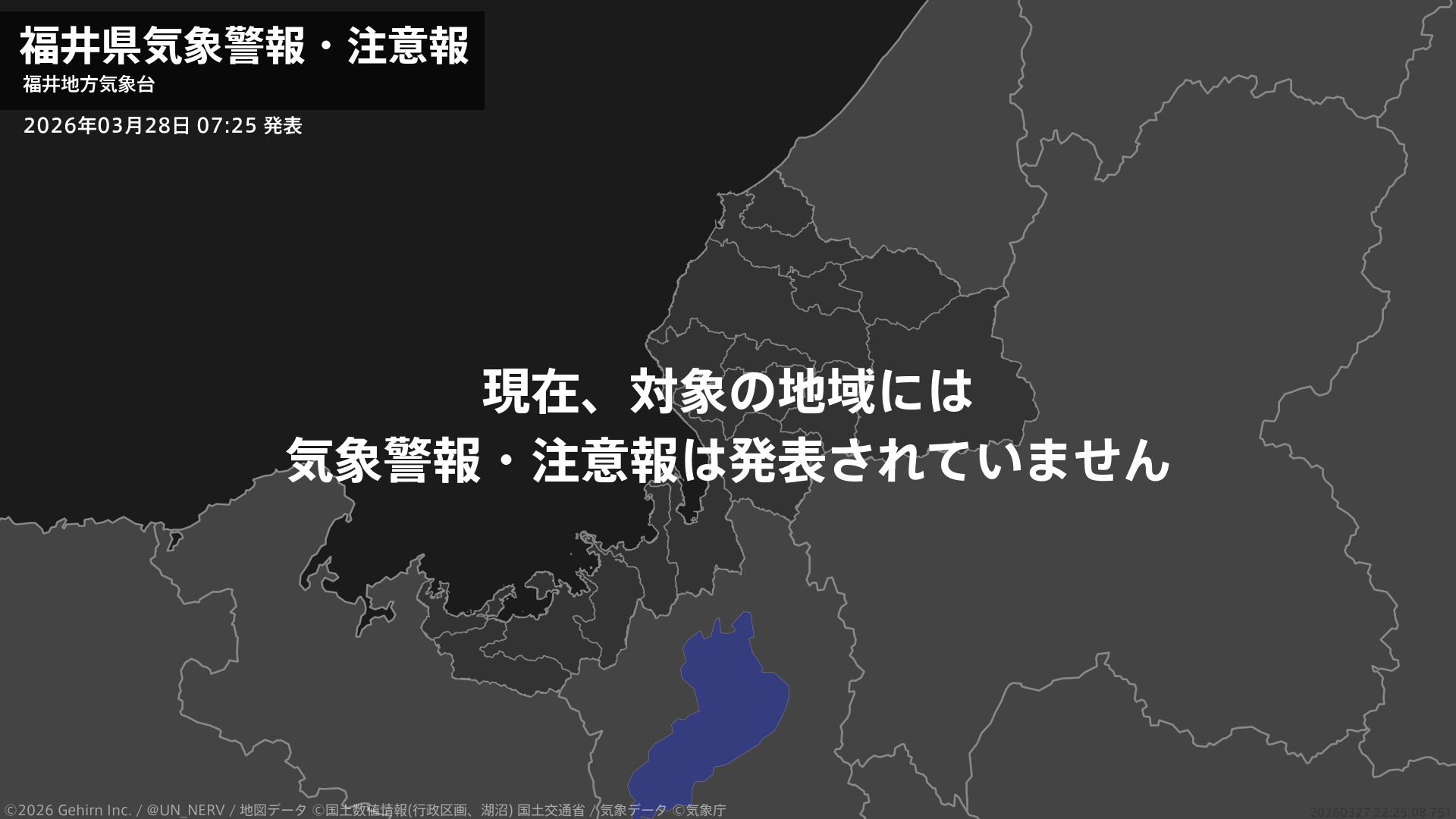 【福井県 気象警報・注意報 2026年03月28日 07:25】