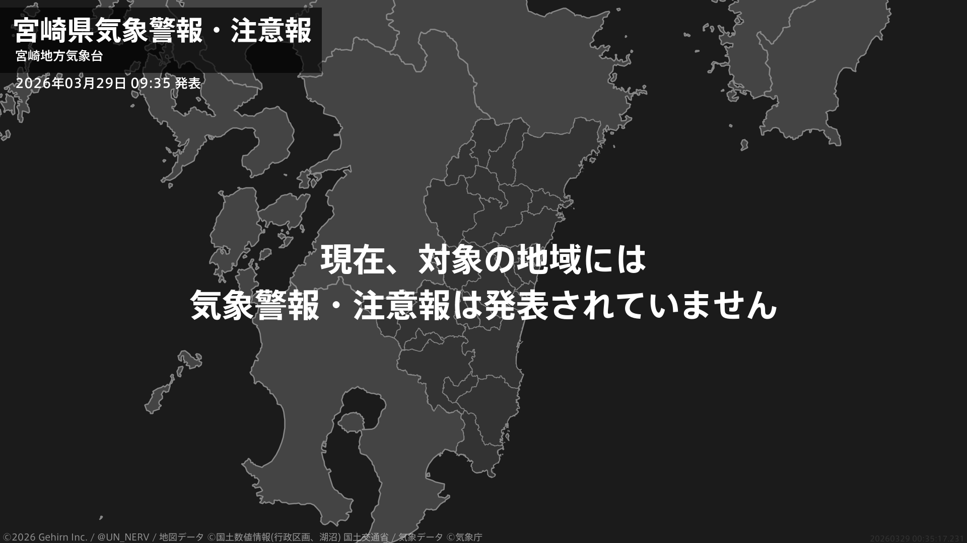 【宮崎県 気象警報・注意報 2026年03月29日 09:35】注意報を解除します。#気象警報注意報 #宮崎県