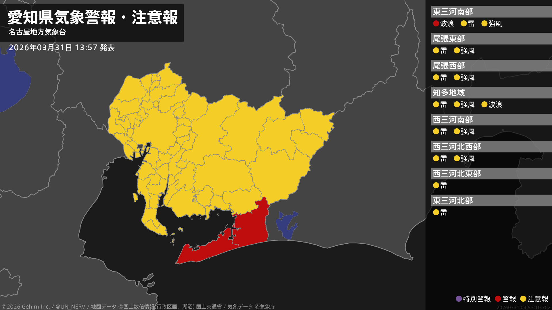 【愛知県 気象警報・注意報 2026年03月31日 13:57】