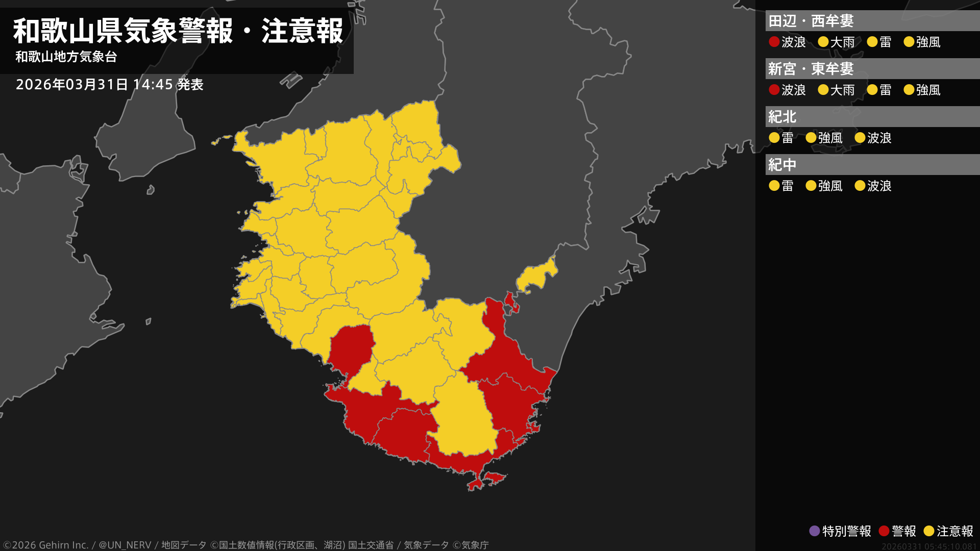 【和歌山県 気象警報・注意報 2026年03月31日 14:45】