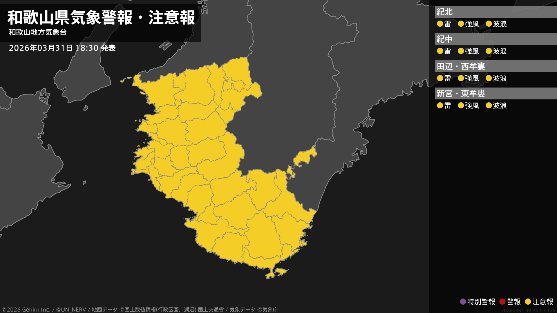 【和歌山県 気象警報・注意報 2026年03月31日 18:30】