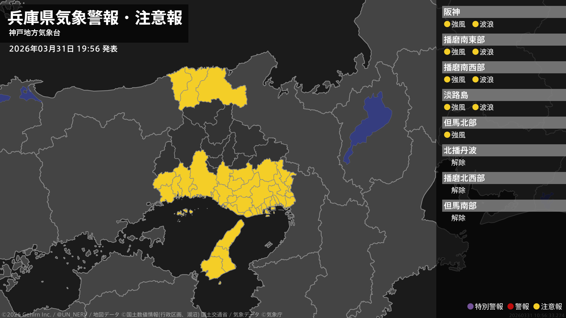 【兵庫県 気象警報・注意報 2026年03月31日 19:56】
