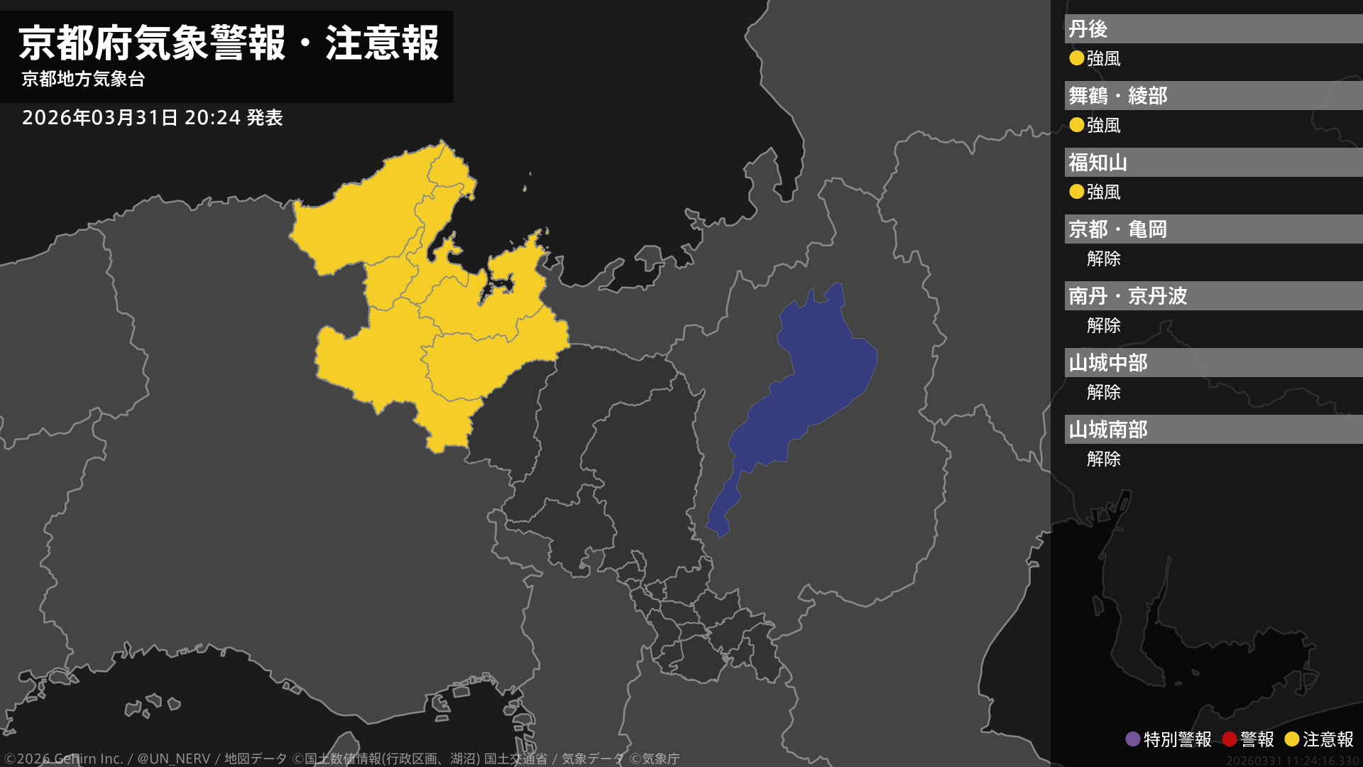 【京都府 気象警報・注意報 2026年03月31日 20:24】