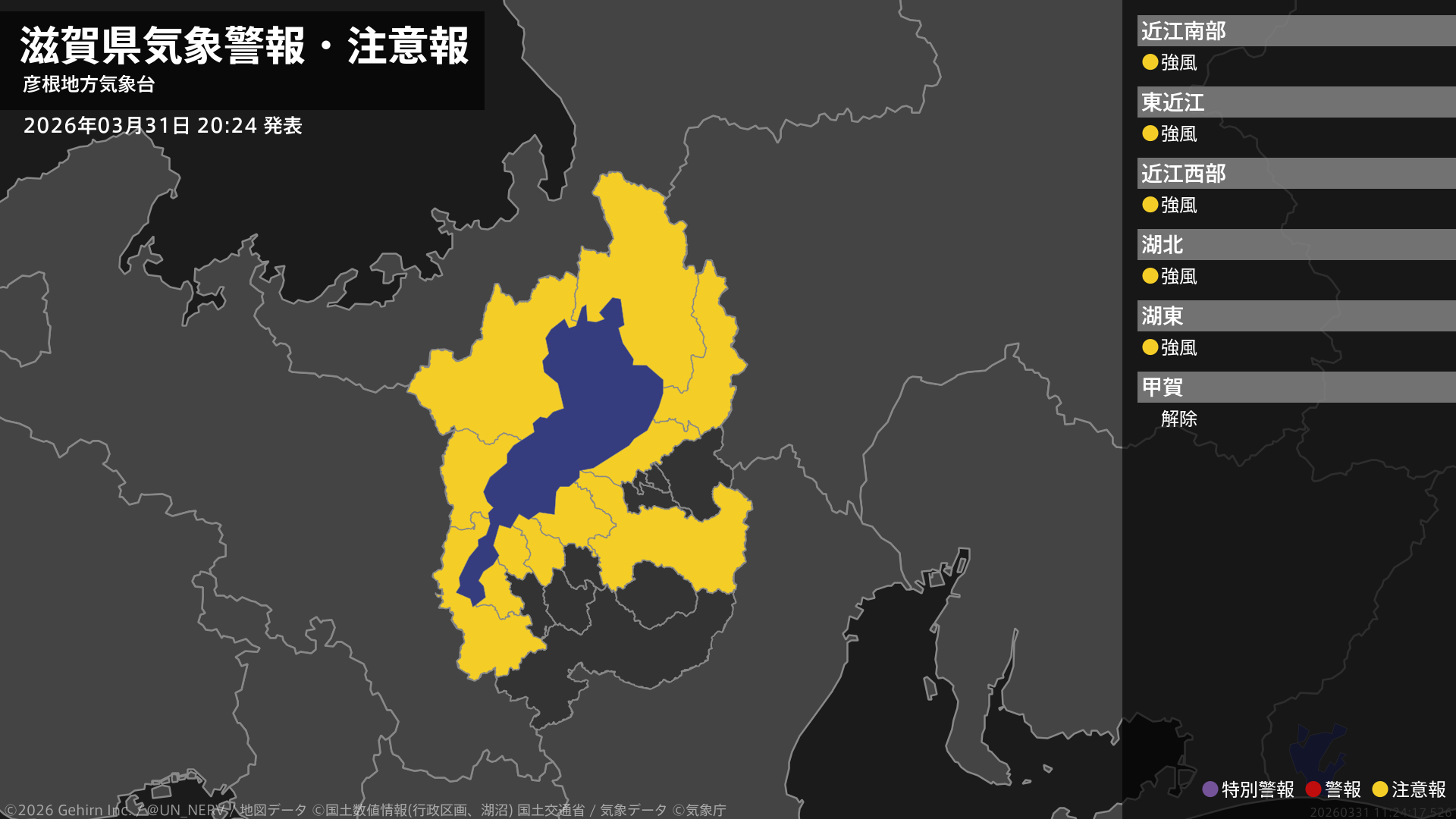 【滋賀県 気象警報・注意報 2026年03月31日 20:24】